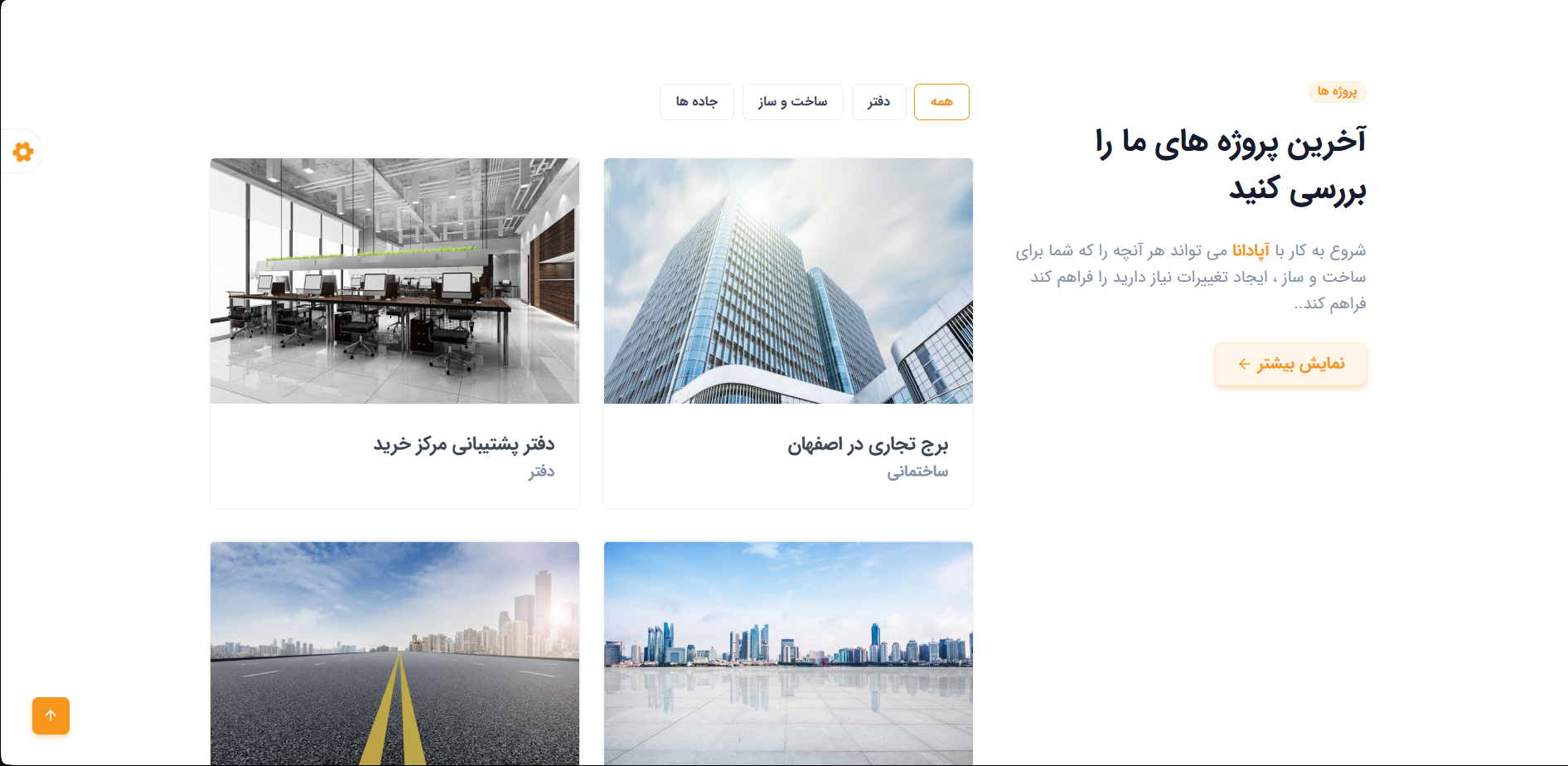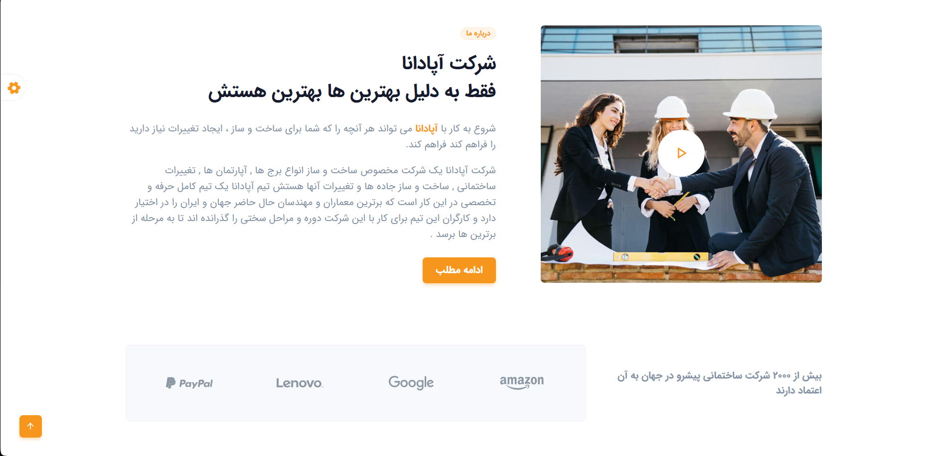 با سلام و وقت بخیر . یک وبسایت شرکتی و لندینگ اختصاصی برای شرکت ساخت و ساز آپادانا طراحی کردیم که از بوت استرپ 5 استفاده شده و در کمترین زمان ممکن این کار تحویل داده شد . این سایت برای تمامی دستگاه ها چه گوشی موبایل و دسکتاپ و تبلت کاملن واکنشگرا هستش و میتوانید به راحتی در تمامی دستگاهی ها بدون خطا باز کنید . یک سایت کاملا ساده اما زیبارا را طراحی کردیم که نشان دهنده تخصص ما در طراحی سایت های شرکتی هستش .