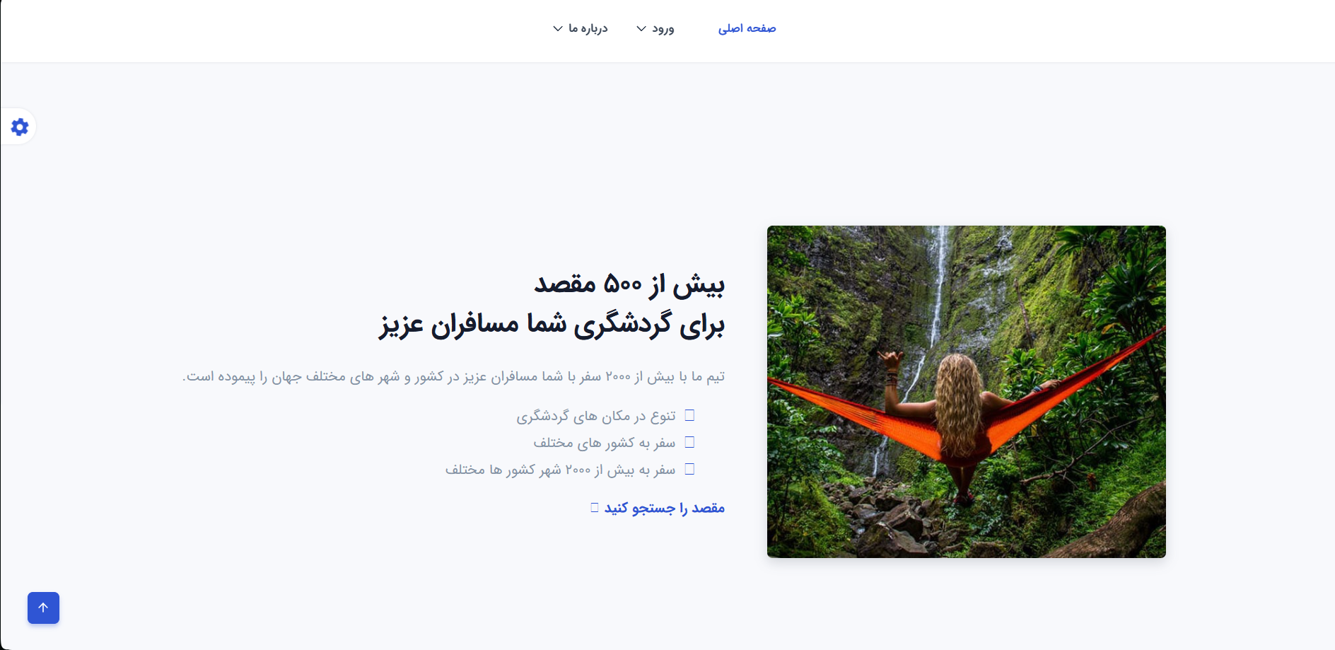 با سلام وقت بخیر . یک سایت اختصاصی برای شرکت گردشگری سو طراحی کردیم که UI حرفه ای , کدنویسی تمیز و اختصاصی , این سایت کاملا ریسپانسیو و برای تمامی دستگاه ها بدون خطا قابل اجرا هستش . از مهارت هایی اصلی ما که HTML / CSS / JS هستش استفاده شده است . من امیر محمد هستم طراح , توسعه دهنده و متخصص طراح سایت با اجرایی قدرتمند در پروژه های فروشگاهی , شرکتی , چندزبانه و لندینگ تخصص فوق دارم